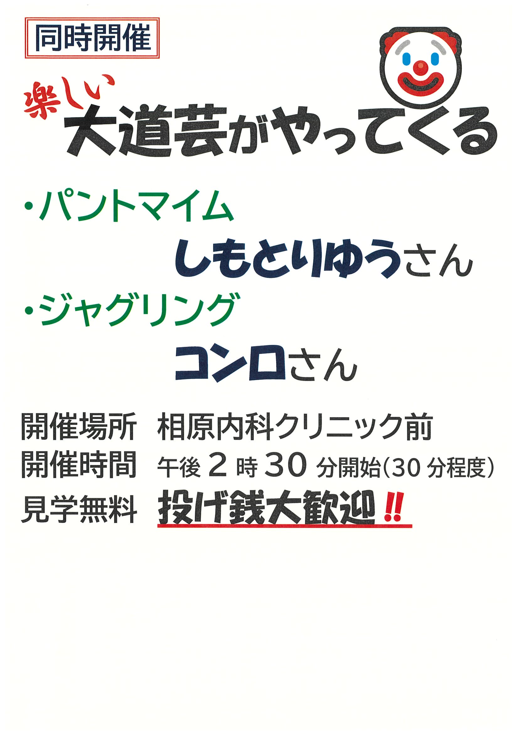 パントマイムのしもとりゆうさん、ジャグリングのコンロさんの楽しいパフォーマンス。