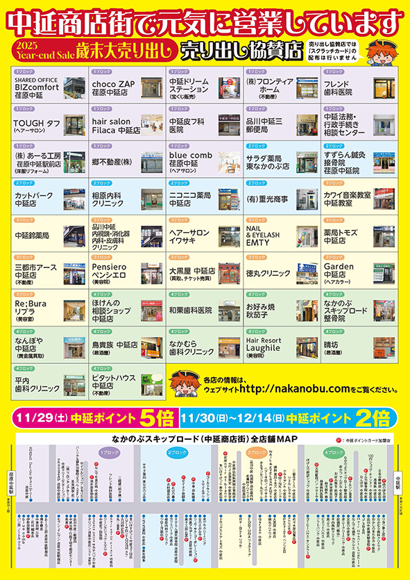 ◆中延ポイント2倍: 11月30日(日)~12月14日(日)