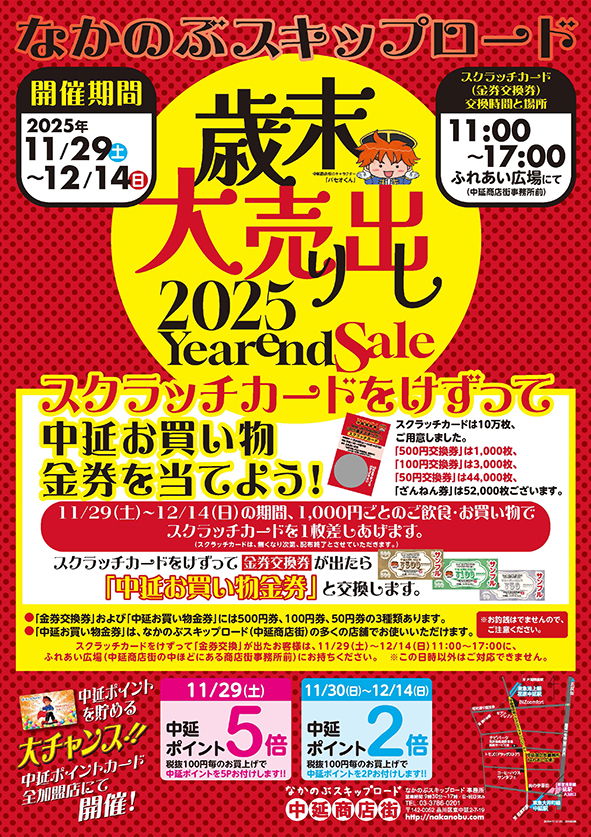 歳末大売り出し(11/29〜12/14):スクラッチカードで「中延お買い物金券」が当たる!